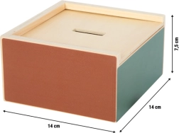 Diese hochwertige Holzbox in natürlicher Optik mit sanften Farben bietet Kindern ab 12 Monaten eine spielerische Form des Lernens. Dank der austauschbaren Deckel mit unterschiedlichen Öffnungen sortieren, stecken und werfen Kinder Formen ein und üben so ganz natürlich das Erkennen von Formen und Farben.