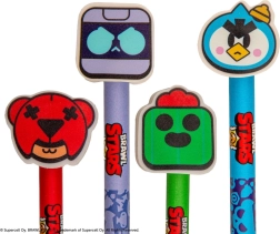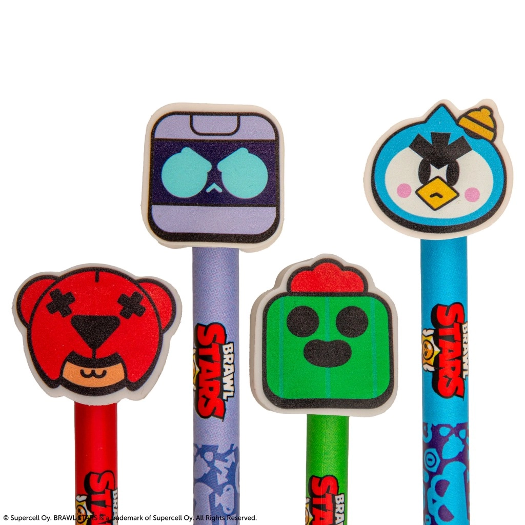 Dieser lizenzierte Bleistift mit Radiergummi bringt die BRAWL STARS-Gaming-Atmosphäre ins Klassenzimmer. Das blaue Gehäuse ist mit markanten grafischen Elementen und dem offiziellen Logo verziert, während der farbige Radiergummi in Form des 8-Bit-Kopfes ein praktisches und zugleich spielerisches Detail darstellt. Perfekt zum Schreiben, Zeichnen und schnellen Korrigieren.