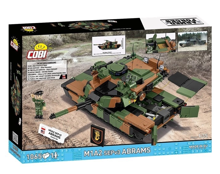 Das Modell begeistert Sammler und Baumeister gleichermaßen: Innen finden Sie öffnende Luken und hintere Service-Sektionen, zwei bewegliche Waffen (M2 Browning und M240) sowie präzise Aufdrucke taktischer und historischer Kennzeichen – ohne Aufkleber. Enthalten ist eine Minifigur eines polnischen Panzerfahrers mit charakteristischer Ausrüstung sowie zwei Tafeln mit Name, Maßstab und Flaggen.