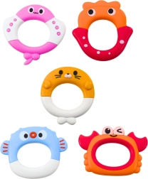 Austauschbare Ringe in verschiedenen Farben und Formen fördern den Griff, die Koordination und das Entdecken neuer Spielkombinationen.