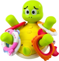 Diese interaktive Schildkröte macht das tägliche Baden zu einem fröhlichen Ritual. Sobald sie ins Wasser gelegt wird, sprüht sie automatisch lebendige Wasserstrahlen, die Kinder faszinieren und ihre Neugier wecken. Dank der austauschbaren, bunten Ringe mit unterschiedlichen Texturen können Kinder das Spielzeug individuell gestalten und neue Spielweisen entdecken.