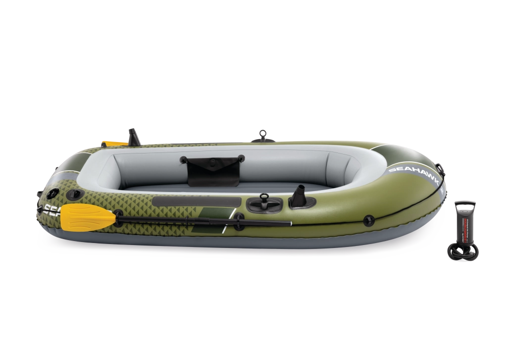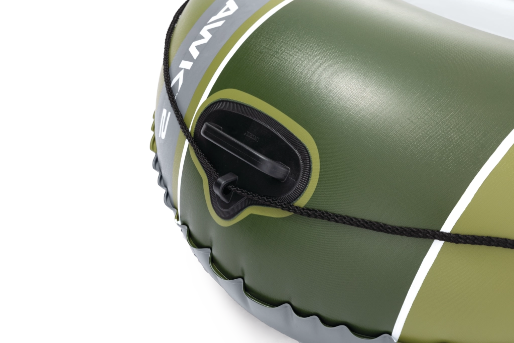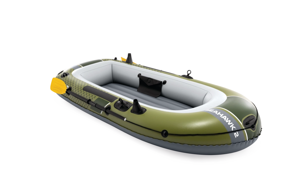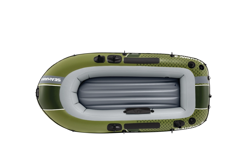 Der Seahawk 2 in attraktivem Grün-Grau vereint Stabilität und Komfort. Das robuste PVC-Material ist resistent gegen Risse und Abrieb, während drei Luftkammern einschließlich innerer Sicherheitskammer eine ruhige Fahrt auch bei anspruchsvolleren Bedingungen gewährleisten. Der aufblasbare Boden mit I-Träger vermittelt ein festes und bequemes Gefühl beim Sitzen und Stehen.