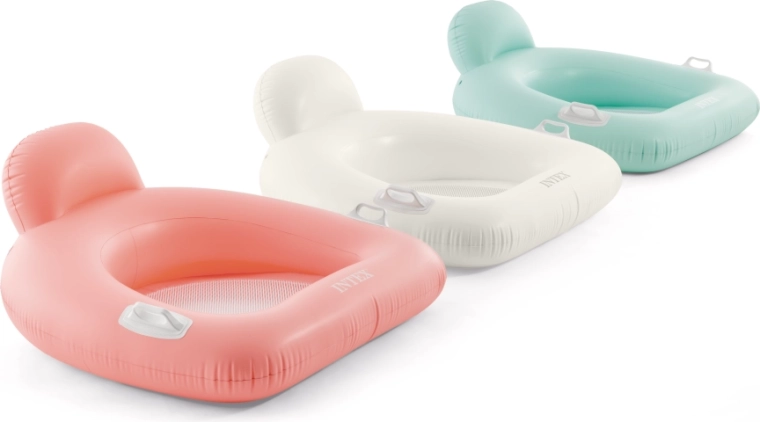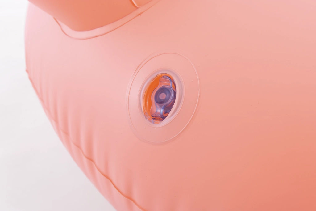 Hergestellt aus hochwertigem Vinyl mit glatter Oberfläche für leichte Pflege und lange Lebensdauer. Ein seitliches Ventil ermöglicht schnelles Auf- und Abblasen. Das moderne Farbdesign – Weiß, korallenapricot und mintgrün – ergänzt Ihre Sommerausstattung perfekt.