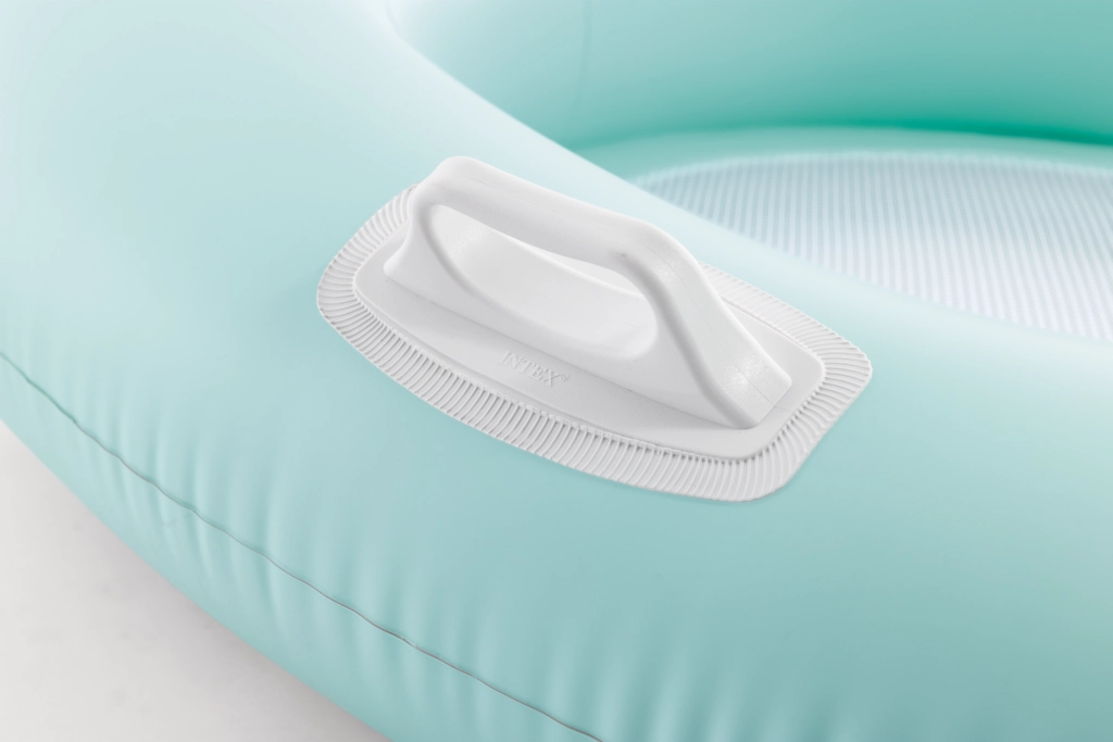 Dieser aufblasbare Sessel ist ideal zur Entspannung im Pool, am See und am Meer. Dank des Netzsitzes werden Sie angenehm vom Wasser gekühlt, während die hohe Rückenlehne mit integrierter Kopfstütze einen stabilen und komfortablen Sitz bietet. Zwei seitliche Griffe erhöhen die Sicherheit beim Aufsteigen und ermöglichen eine einfache Handhabung.