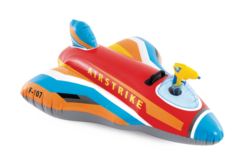 Der aufblasbare Jet AIRSTRIKE F-107 verwandelt jeden Pool in einen actiongeladenen Flugplatz. Dank der breiten Flügel und des Heckstabilisators ist er sehr stabil und für jüngere Kinder bequem. Die integrierte Wasserpistole im Cockpit ermöglicht einfaches Spritzen und sorgt für endlosen Spaß.