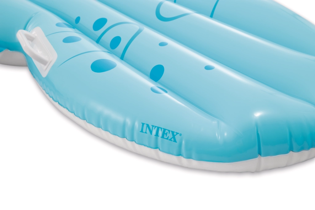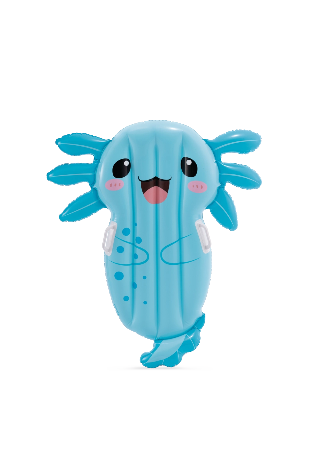 Die aufblasbare Liege AXOLOTL mit Griffen vereint das verspielte Design eines beliebten Wassertiers mit praktischen Details für bequemes und sicheres Toben im Wasser. Das leuchtend blaue Design mit kleinen Flossen fällt sofort ins Auge, während zwei stabile weiße Griffe Kindern beim Liegen und Gleiten über die Wasseroberfläche Sicherheit geben.