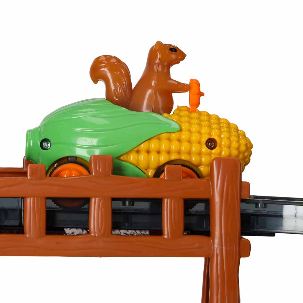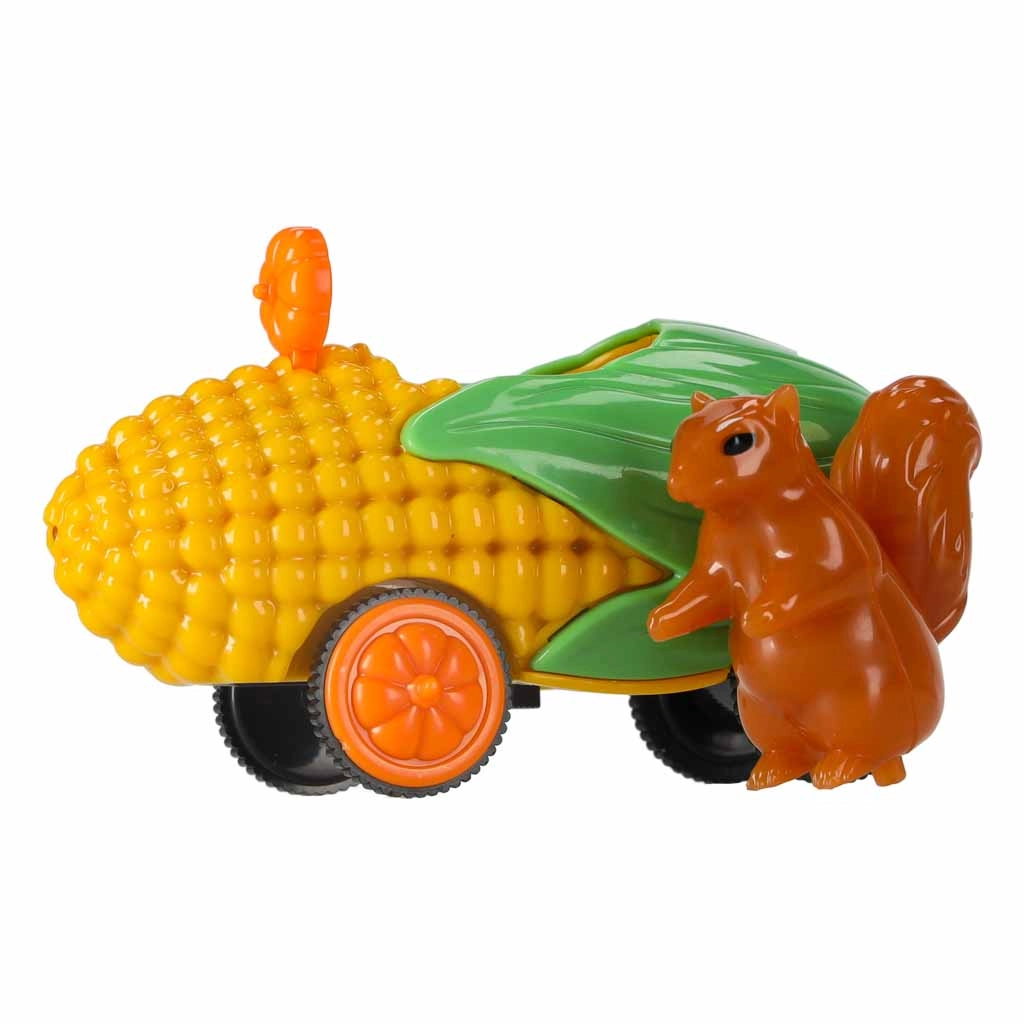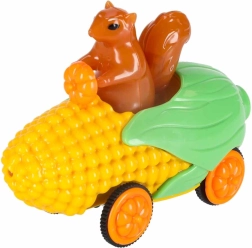 Das niedliche Auto in Maisform mit einem Eichhörnchen als Fahrer bringt Farbe und Licht ins Spiel. Perfekte Motivation für kleine Rennfahrer und Fahrten am Abend.