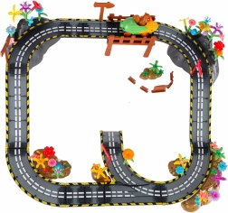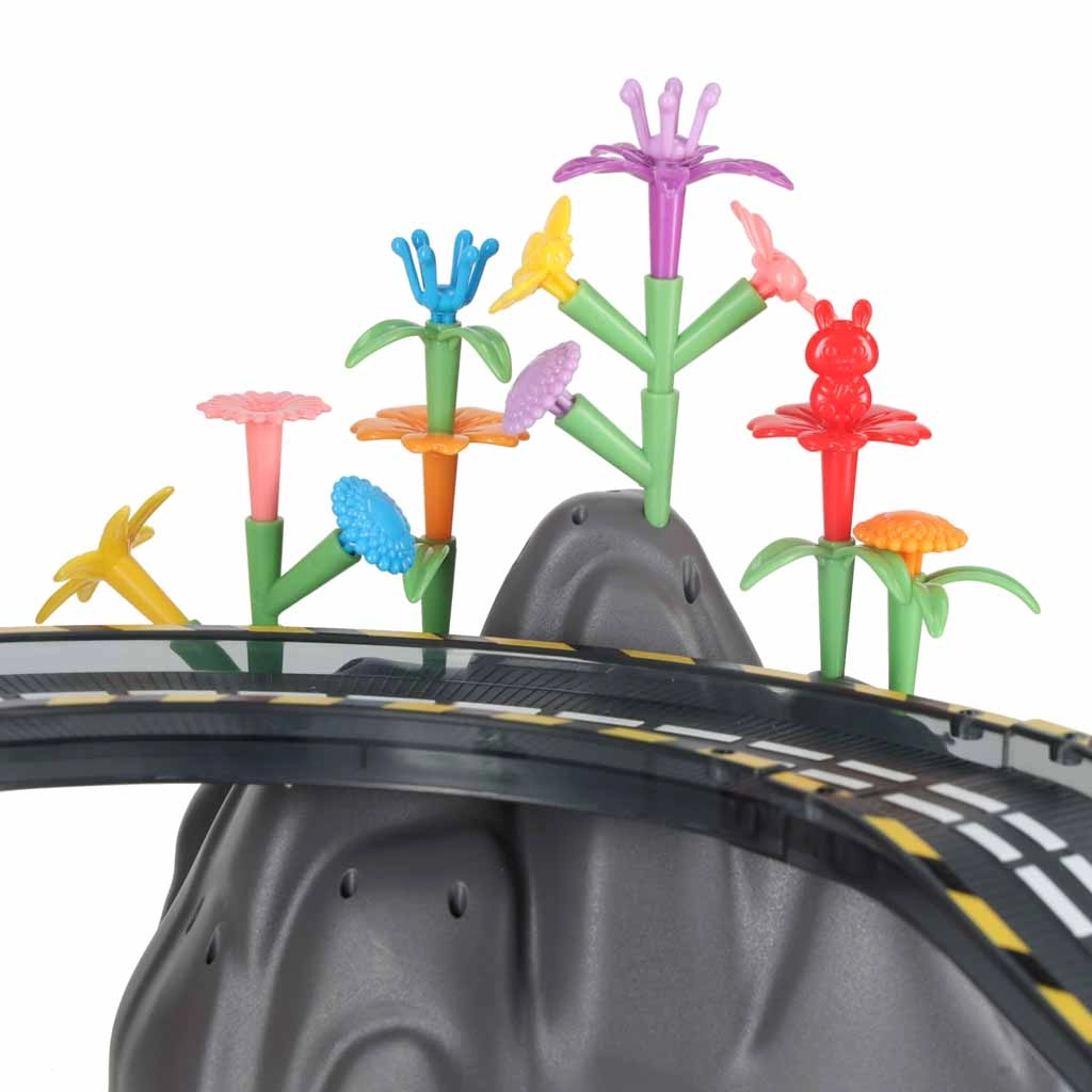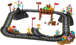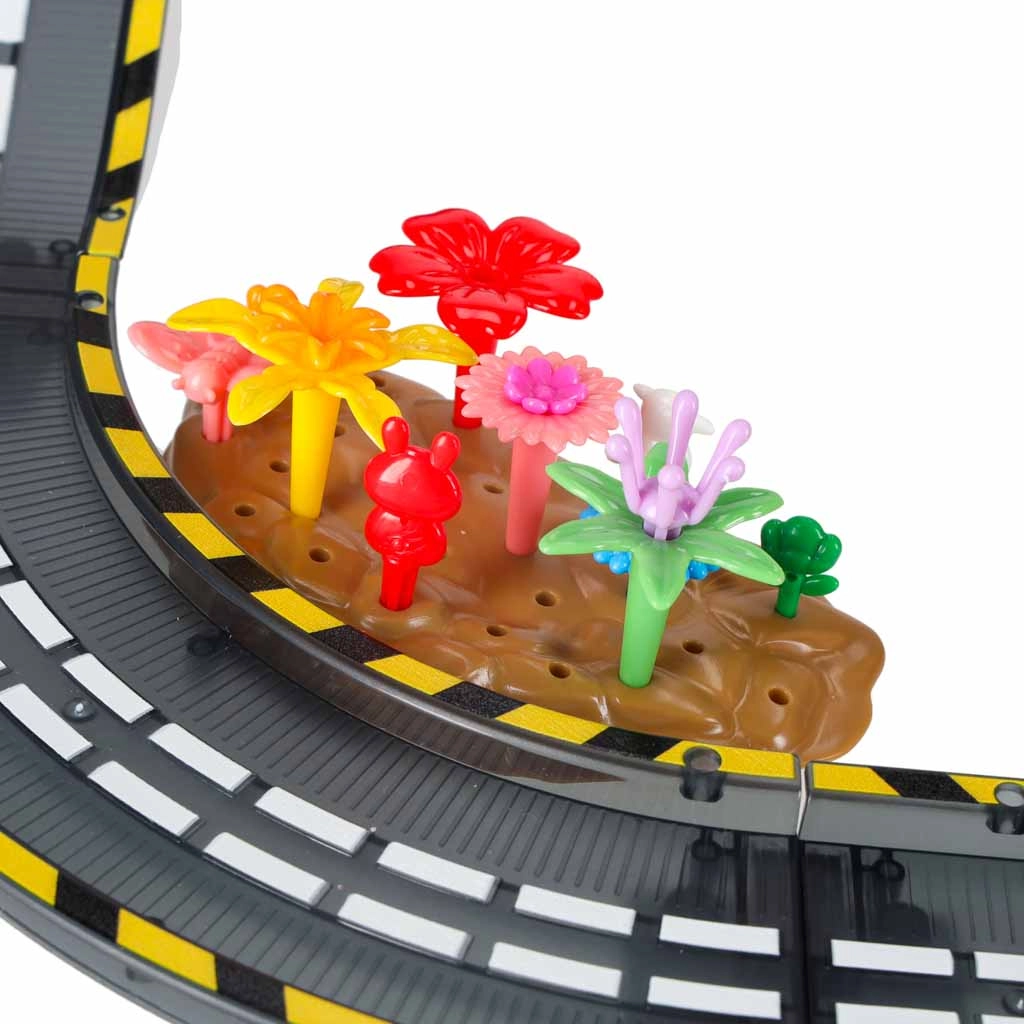Es handelt sich um ein pädagogisch wertvolles Spielzeug, das auf natürliche Weise Kreativität, logisches Denken und die Fähigkeit zum Planen fördert. Jede neue Anordnung erzählt eine andere Geschichte – Kinder können Blumen, Bäume, Zäune, Felsen und Flaggen hinzufügen und so eine originelle Umgebung für Rennfahrten gestalten.