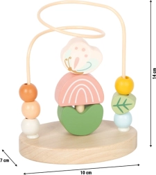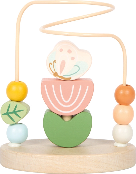 Das Motorik-Labyrinth Wiese von small foot bringt Kindern Freude am Entdecken und Lernen. Die stabile Metallschleife mit farbigen Holzperlen ermöglicht ein flüssiges Verschieben, das die Feinmotorik und einen präzisen Griff natürlich fördert. In der Mitte befindet sich ein faltbares Minigame mit sechs Holzteilen (Biene, Schmetterling, 2 Blütenblätter, 2 Blätter), das Konzentration und logisches Denken unterstützt.
