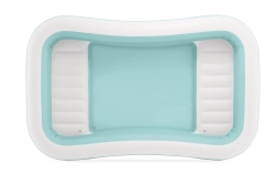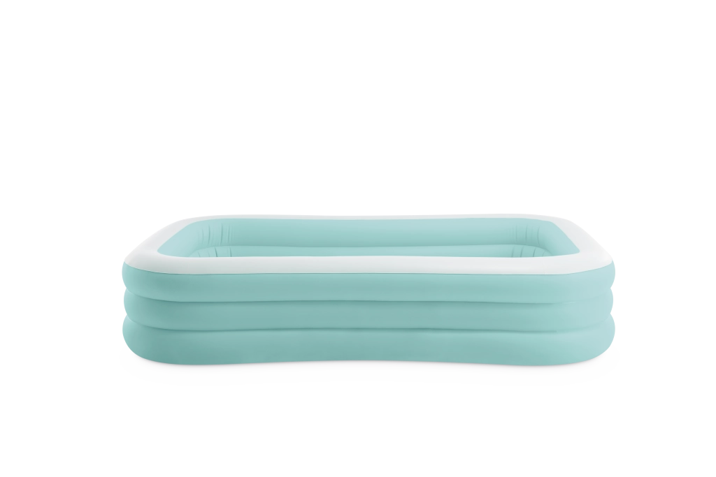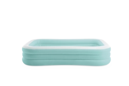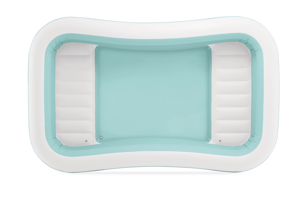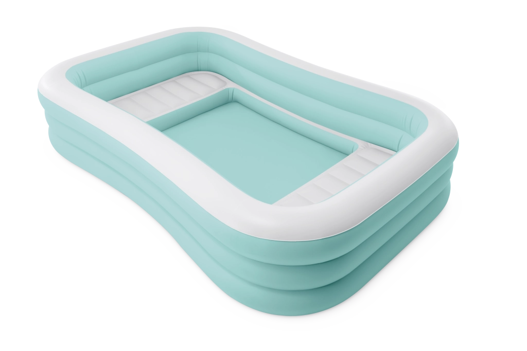 Der aufblasbare Pool Swim Center Family Lounge ist ideal für die Familienerholung im Garten oder auf der Terrasse. Die rechteckige Form mit leicht abgerundeten Ecken und die Kombination aus Hellblau und Weiß wirken frisch und elegant. Drei separate Luftkammern sorgen für Festigkeit, Stabilität und eine komfortable Wandhöhe, sodass Kinder ab 6 Jahren ebenso wie Erwachsene das Baden genießen können.
