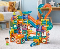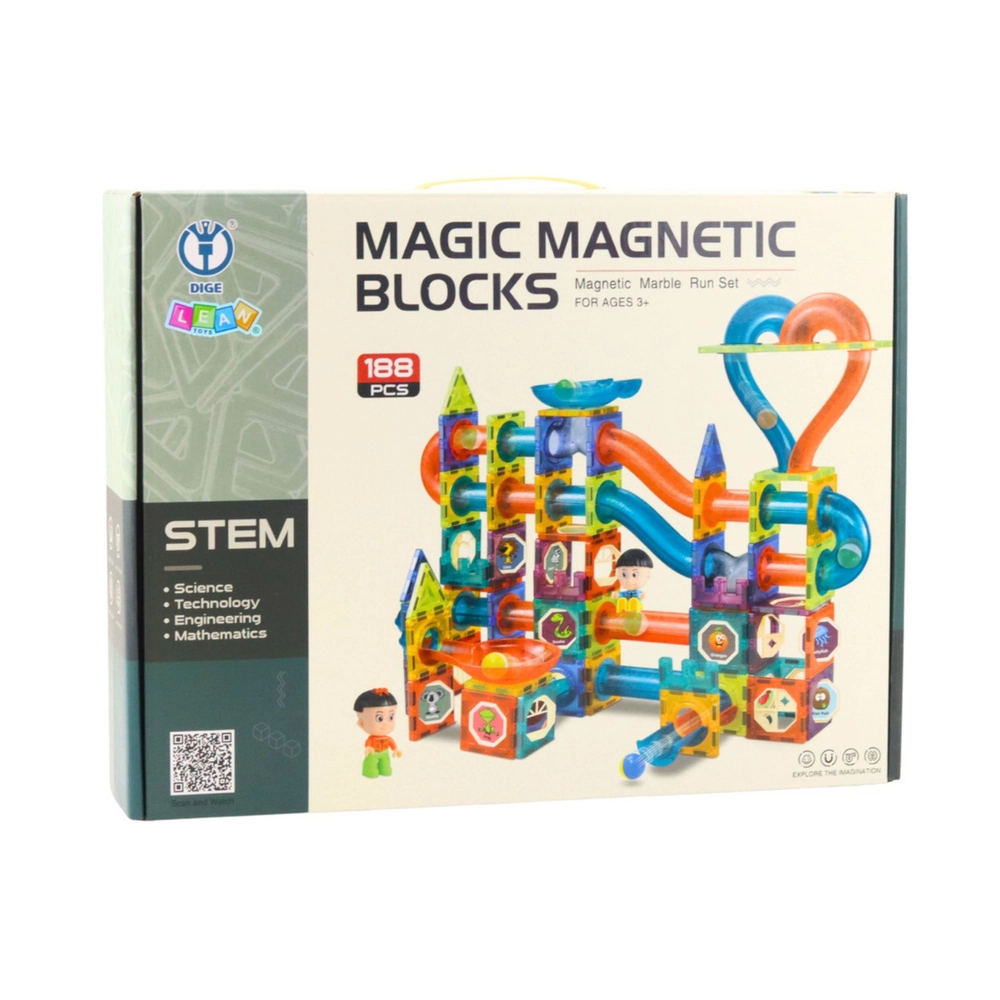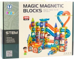 Das Set MAGIC MAGNETIC BLOCKS verbindet kreatives Spiel und Lernen. Bunte, transparente Teile, Röhren, Kurven und Rutschen ermöglichen originelle Murmelbahnen, die sich dank der magnetischen Verbindungen beliebig erweitern und umbauen lassen. Das Spiel fördert Hand-Auge-Koordination, Problemlösen und Teamarbeit.
