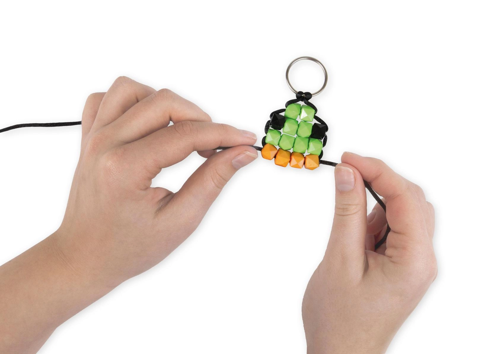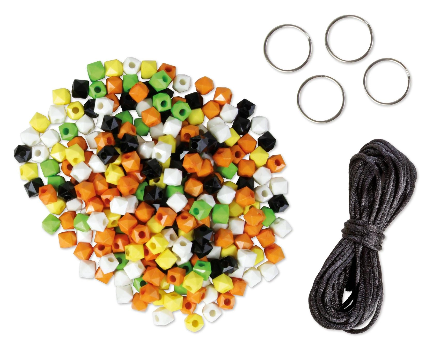 Im Set finden Sie 250 modische Perlen in leuchtenden Farben, eine schwarze Schnur zum Auffädeln und 4 Metallringe zum Fertigstellen der Anhänger. Die Vorgehensweise ist einfach und intuitiv – fädeln Sie einfach nach Vorlage auf und im Handumdrehen entstehen stylische Talismane.