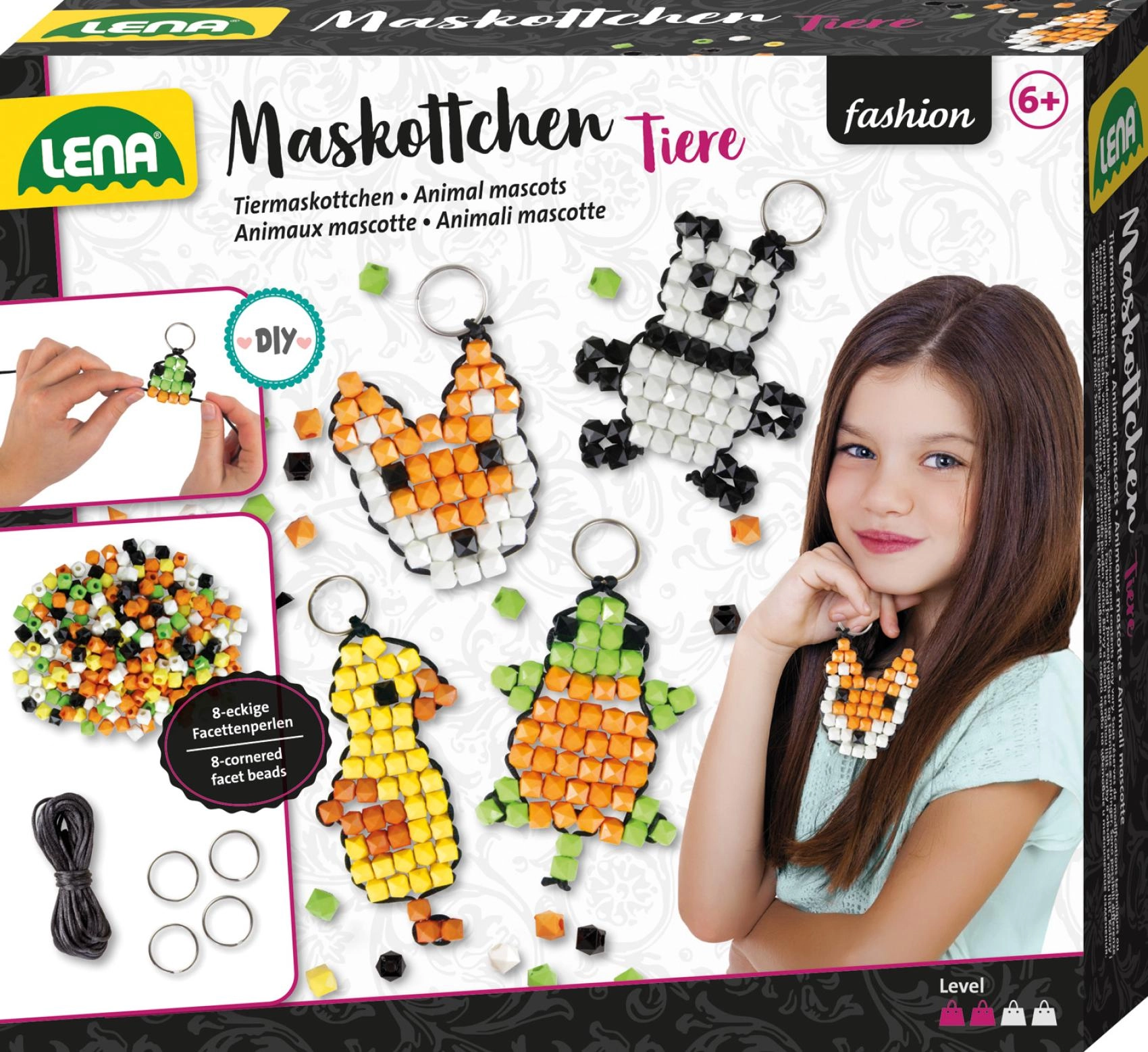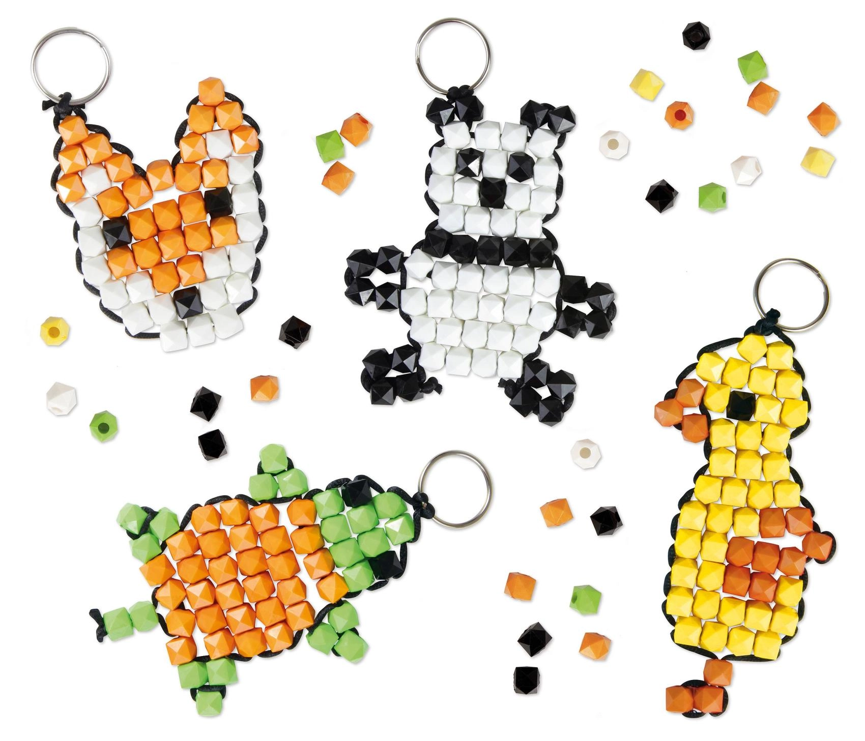 Gestalten Sie einen Fuchs, Panda, eine Schildkröte oder ein Entchen. Auffällige Farben und der Pixel-Look machen die Anhänger zu einem stylischen Accessoire.