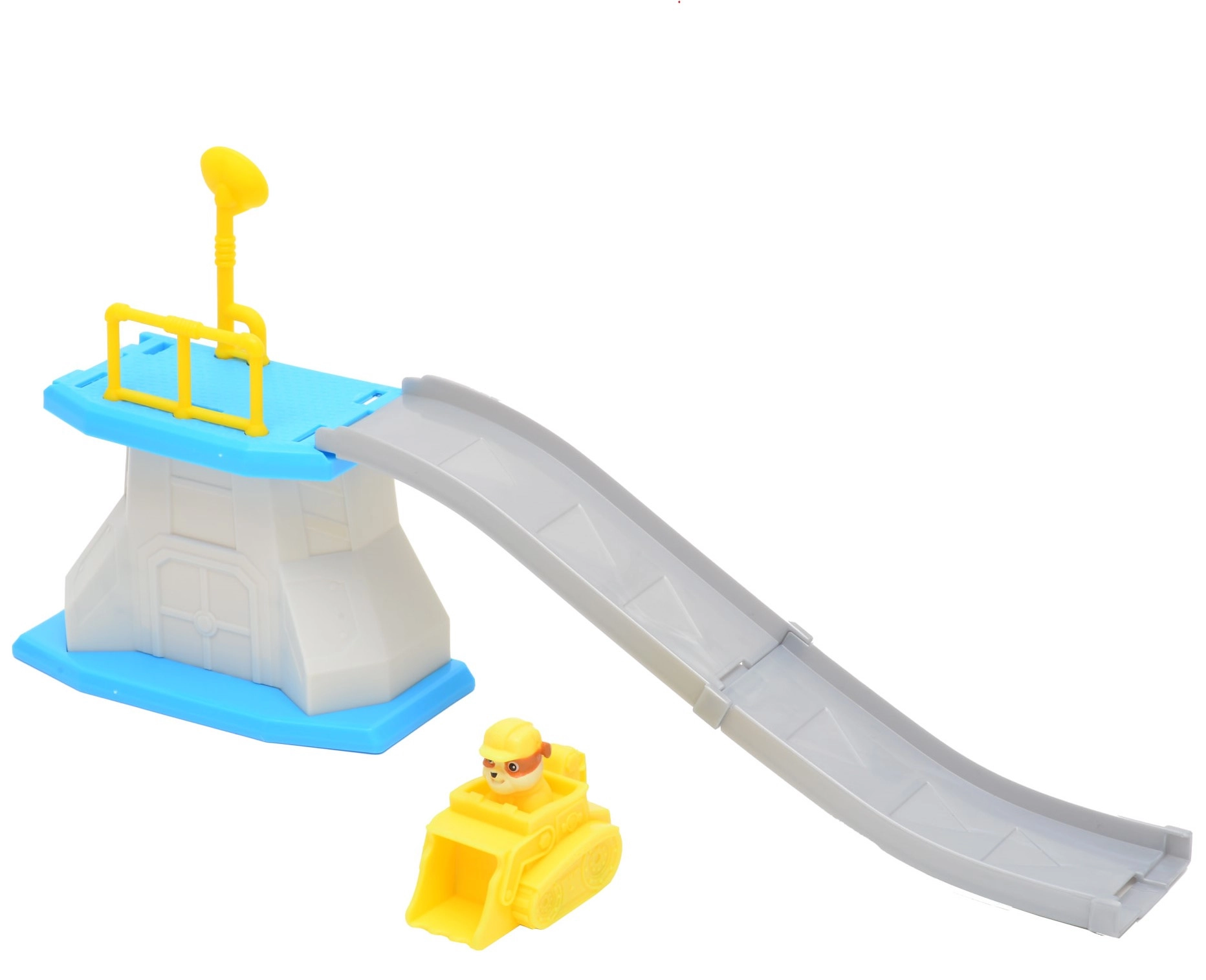 Enthalten ist ein gelber Bulldozer mit integrierter Rubble-Figur – ideal für den Schnellstart von der Plattform und zum Nachspielen von PAW PATROL-Geschichten.