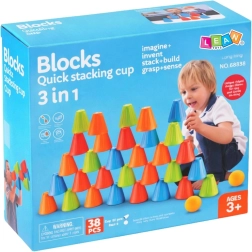 Geschicklichkeits- und Lernspiel 3-in-1 schnelle Becher mit Bällen, 38 Teile