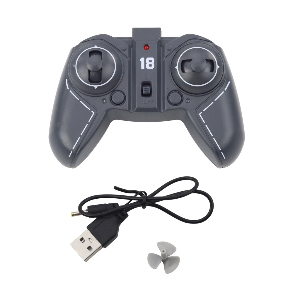 Präzise Manöver vorwärts/rückwärts, links/rechts sowie Drehung auf der Stelle. USB-Laden und Ersatzpropeller im Lieferumfang für komfortablen Betrieb.