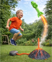 Dieses vulkanische Abschussset verwandelt Garten oder Park in einen spannenden prähistorischen Spielplatz. Einfach die Dino-Rakete auf den Sockel setzen, auf den Luftbalg treten und zusehen, wie die Rakete hoch in die Luft steigt. Dank der Motive T‑Rex, Triceratops und Pterodaktylus entwickeln Kinder sowohl Fantasie als auch Motorik.