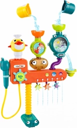 Dieses farbenfrohe Wasserspielzeug für die Badewanne unterstützt Neugier und Feinmotorik. Mit Hilfe der Becher gießt das Kind Wasser in die Trichter, wodurch sich die drehenden Windräder und das Verspritzen des Wassers auslösen. Der eindrucksvolle Wasserfluss hilft, den Ursache–Wirkung-Zusammenhang zu verstehen und verschönert die tägliche Hygiene.