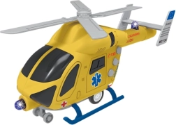 Dank des Schwungrad-Antriebs ist das Spiel einfach und dynamisch – kurz anschieben und der Hubschrauber fährt los. Die robuste Kunststoffausführung, die kompakte Größe von 20 cm und das funktionierende Blaulicht machen ihn zum idealen Spielzeug für kleine Retter.