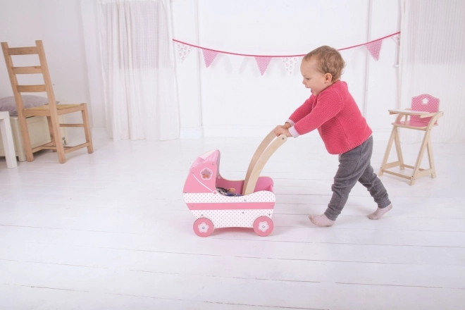 Der rosa Holzpuppenwagen ist das perfekte Spielzeug für kreatives Rollenspiel. Er besteht aus hochwertigen Materialien, die Stabilität und Sicherheit für Ihr Kind gewährleisten.