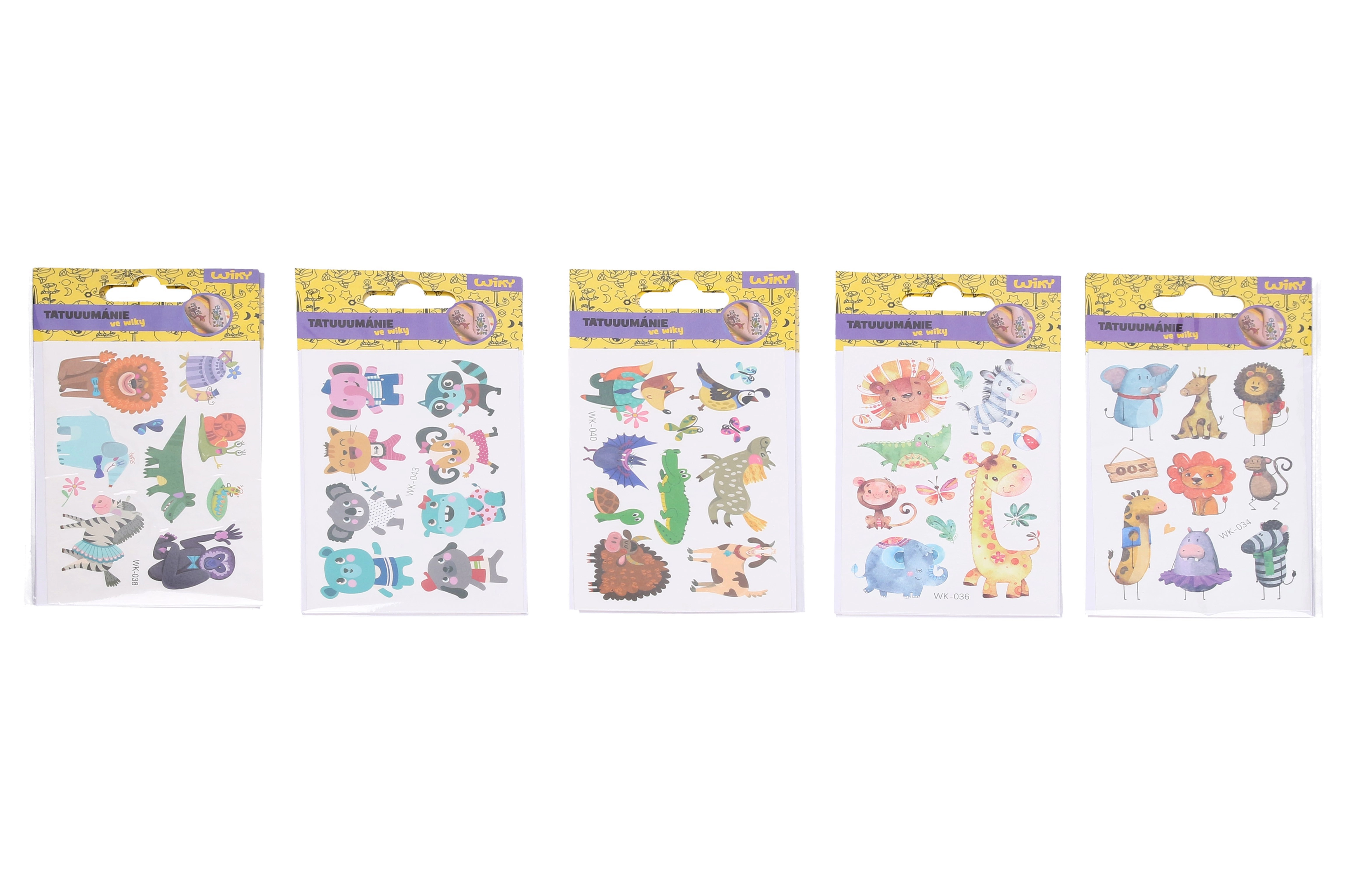 Beleben Sie Kindergeburtstage, Ferienlager oder Familienwochenenden mit fröhlichen Tattoos mit Tiermotiven. Dank des praktischen Formats 7,5 × 11 cm lassen sich die Motive leicht auf die Haut übertragen und halten mehrere Tage. Der Mix aus niedlichen Tiermotiven erfreut kleine Naturfreunde.