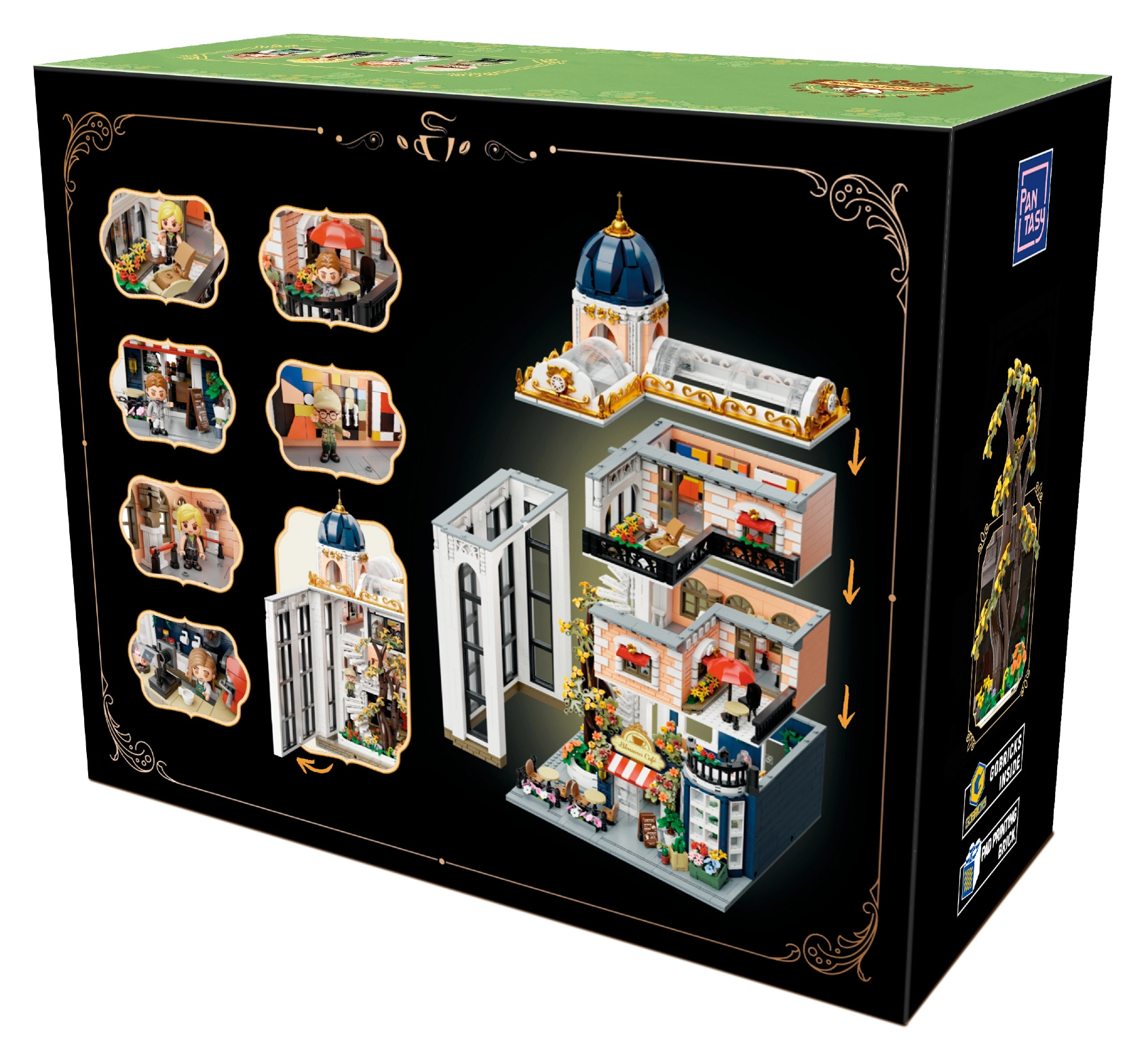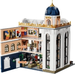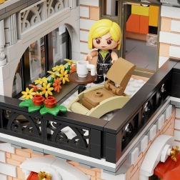 Das Modell ist vollständig modular: Einzelne Etagen und Wände lassen sich leicht abnehmen, um Zugang zum Innenraum zu erhalten und Szenen zu arrangieren. Reichhaltige architektonische Details, Balkone, Verglasungen und Dekorationen machen es zu einem perfekten Sammlerstück und einer markanten Innendekoration.
