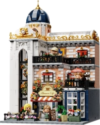 Dieses repräsentative Modell verbindet romantische Stadtarchitektur mit Natur. Das Erdgeschoss bildet ein gemütliches Café mit Sitzplätzen und Vitrine, im Obergeschoss befinden sich Galerie und Relaxzone mit Terrasse, und ganz oben finden Sie einen eleganten Salon zum Entspannen. Das Herz des Hauses ist eine hohe Blumeninstallation, die sich um die Wendeltreppe windet und alle Stockwerke verbindet.