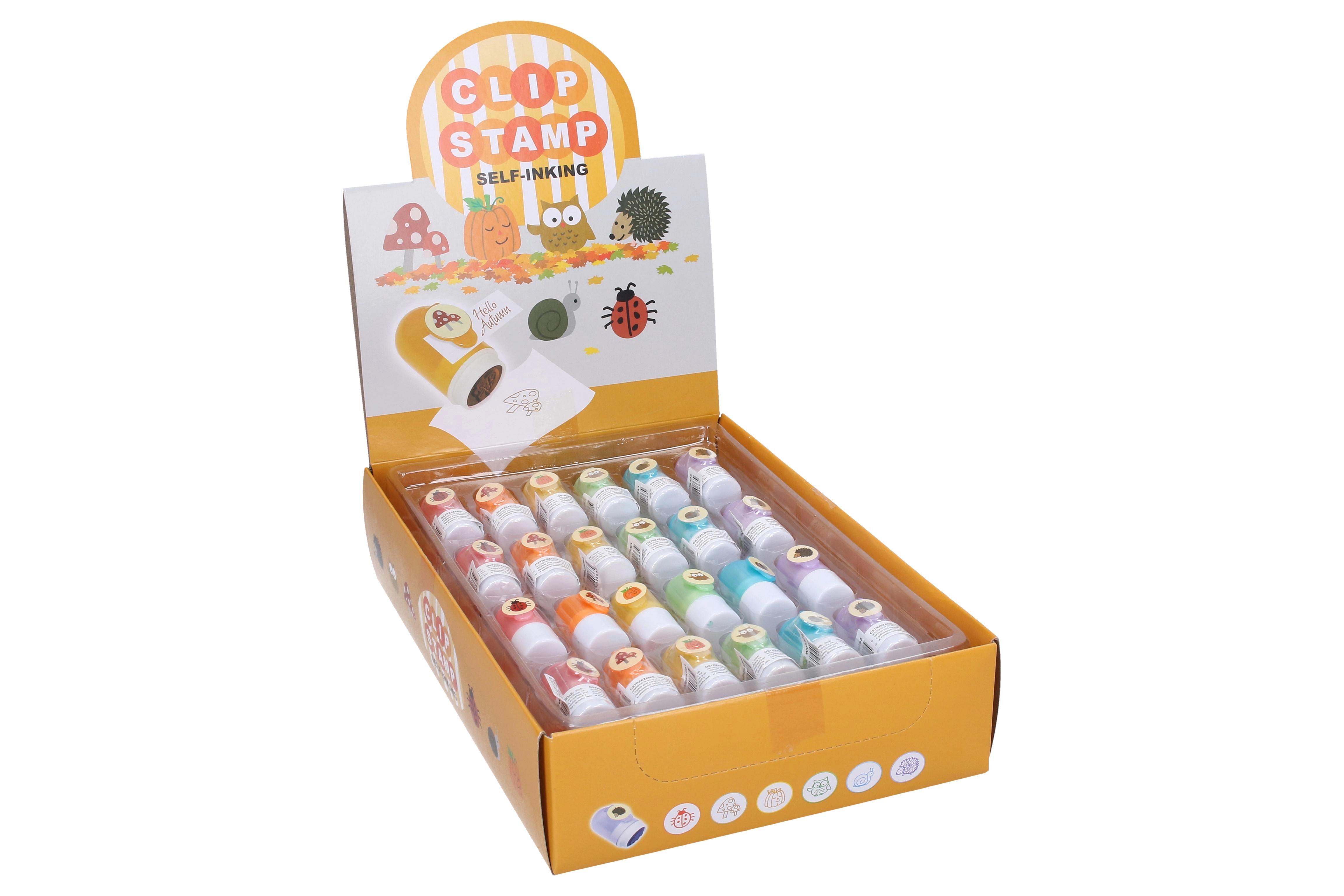 Bringen Sie Farbe in Kreativität und Organisation mit den bunten Selbstfärbestempeln mit Clip. Jeder Stempel liefert einen sauberen, schnellen Abdruck ohne separates Stempelkissen, und dank des praktischen Clips lässt er sich leicht an Heft, Tasche oder Federmäppchen befestigen. Ideal für Lehrkräfte, Eltern und Kinder – Belohnungen, Deko, Planer und Scrapbooks werden mit diesen Motiven zum Vergnügen.