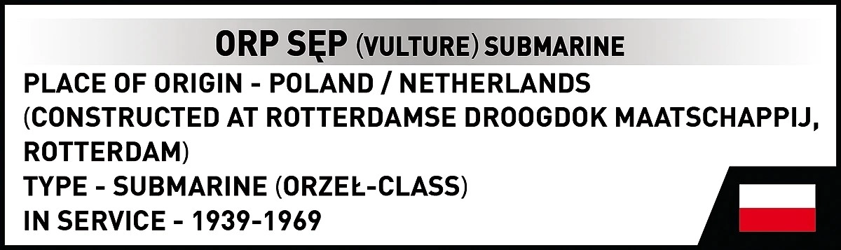 Die ORP Sęp aus der COBI Historical Collection ist ein detailreiches Sammlermodell des polnischen U-Boots der Orzeł-Klasse. Dank kompakter Abmessungen und sorgfältig gewählter Farbsteine wirkt es im Regal ebenso wie in der Vitrine. Der Bausatz entstand in Zusammenarbeit mit dem Marinemuseum in Gdynia und verbindet fesselnde Geschichte mit präziser Ausführung.