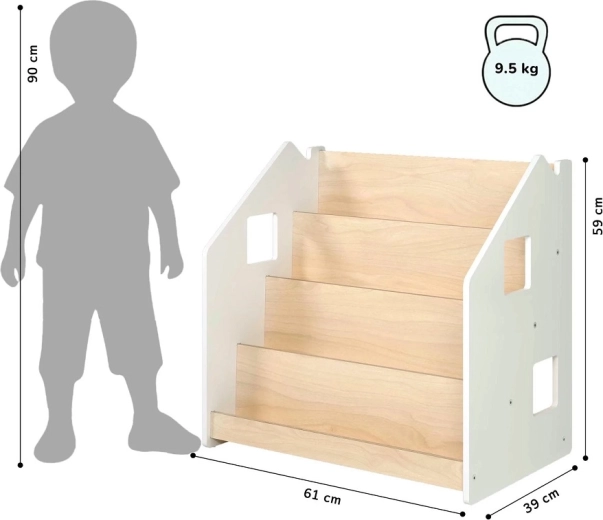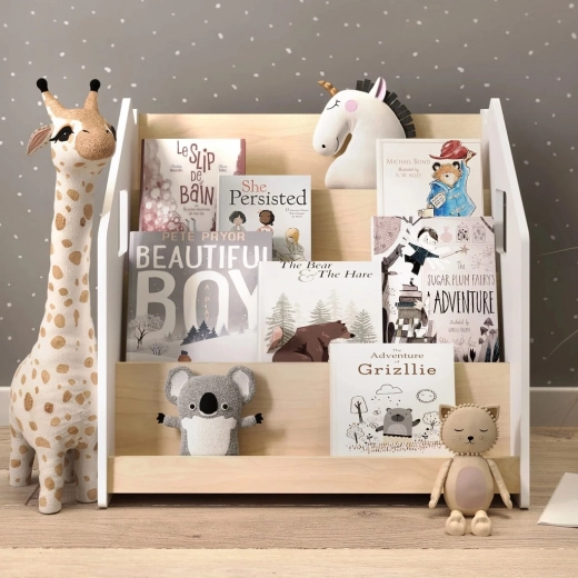 Das BusyKids-Bücherregal ist so gestaltet, dass Kinder die Buchcover gut sehen und Bücher selbstständig auswählen und wieder einräumen können. Mit seinem klaren, zeitlosen Look passt es hervorragend ins Kinderzimmer, Spielzimmer oder Wohnzimmer. Die vorderen Fächer halten Lieblingsbücher griffbereit, während der hintere Stauraum weitere Bücher oder Spielzeug aufnimmt.