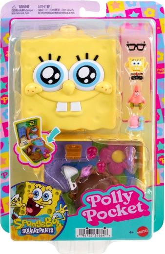 Nehmen Sie den Spielspaß in die Tasche mit! Dieses kompakte Polly Pocket Set im SPONGEBOB SQUAREPANTS Design öffnet sich zu einer detailreichen Mini-Szene von Bikini Bottom – zu sehen sind SpongeBobs Ananas-Haus, Patricks Steinhaus, Thaddäus’ Haus sowie das Quallenfeld. Dank des verschließbaren Etuis und der robusten Verarbeitung ist das Spiel leicht zu transportieren und ideal für unterwegs.