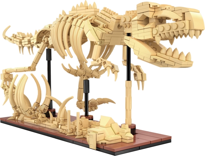 Durch das Kombinieren von Teilen aller drei Modelle entsteht ein großer TYRANNOSAURUS REX. Die modulare Konstruktion und die elektronische Anleitung erleichtern den Umbau.