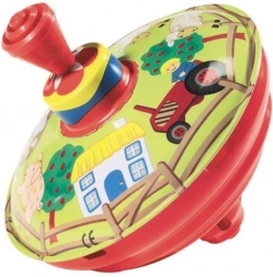 Dieser traditionelle Spielkreisel mit Bauernhofmotiv ist das ideale Spielzeug für die Kleinsten. Der einfache Hebelmechanismus setzt den Kreisel in Rotation, die für charakteristische Geräusche und visuelle Reize sorgt.