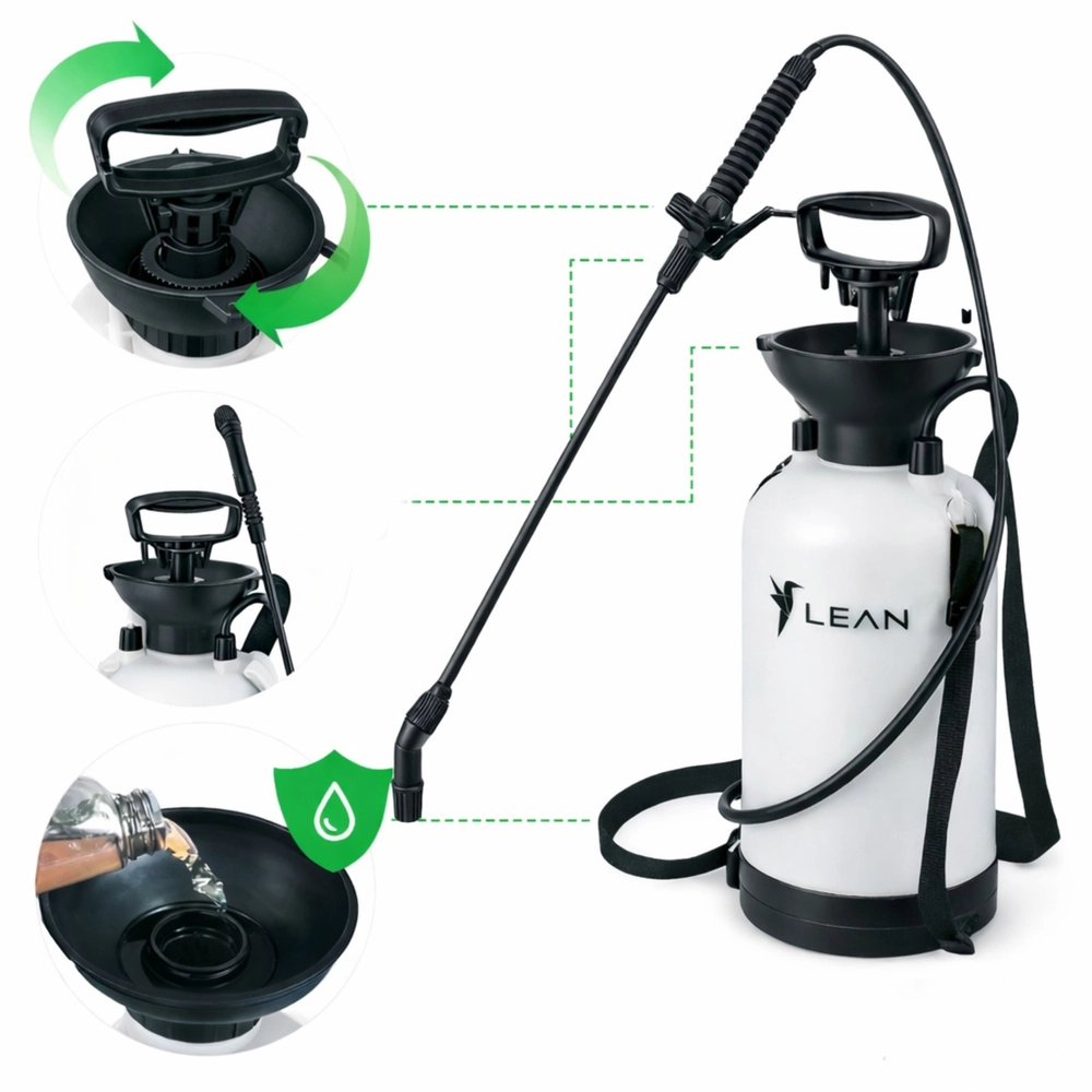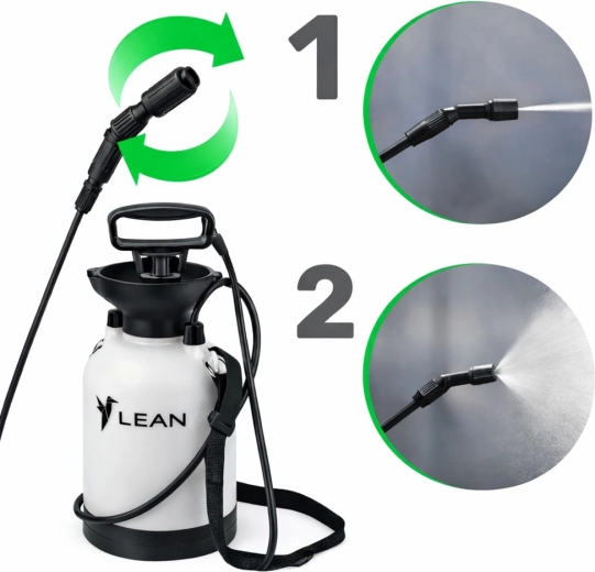 Der Hand-Drucksprüher LEAN mit 3 Litern Volumen ist ein zuverlässiger Helfer für gleichmäßiges und sparsames Versprühen von Wasser, Dünger und Pflanzenschutzmitteln. Das ergonomische Design mit Handpumpe (auf–ab) und verstellbarer Düse bietet volle Kontrolle über die Durchflussmenge – vom feinen Nebel für empfindliche Pflanzen bis zum gebündelten Strahl für präzise Anwendungen.
