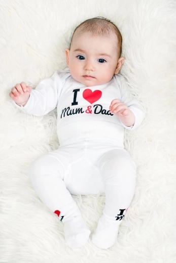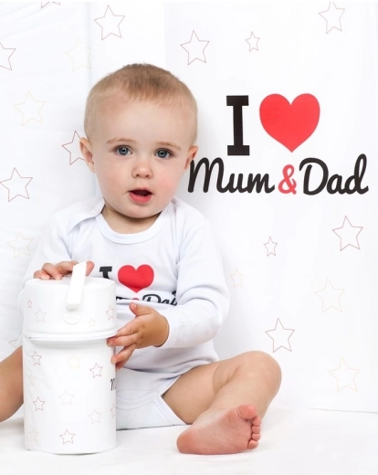 Kleiden Sie Ihr Baby in den originellen und bequemen Body von New Baby mit dem Aufdruck I love Mum and Dad. Das hochwertige Baumwollmaterial ist angenehm auf der Haut, sanft zu empfindlicher Babyhaut und sorgt für ganztägigen Komfort. Die für den Druck verwendeten zertifizierten Farben sind für die Kleinsten sicher.