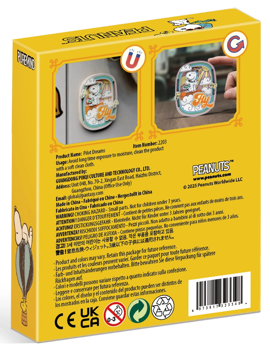 Dieser lizenzierte PUREMIND-Magnet zeigt Snoopy in einer dynamischen Flugszene mit dem Schriftzug „Fly“. Die mehrschichtige Holzausführung mit Farbdruck wirkt wie ein kleines 3D-Bild, das sofort ins Auge fällt und Kinderzimmer, Küche sowie Arbeitsplatz erhellt.