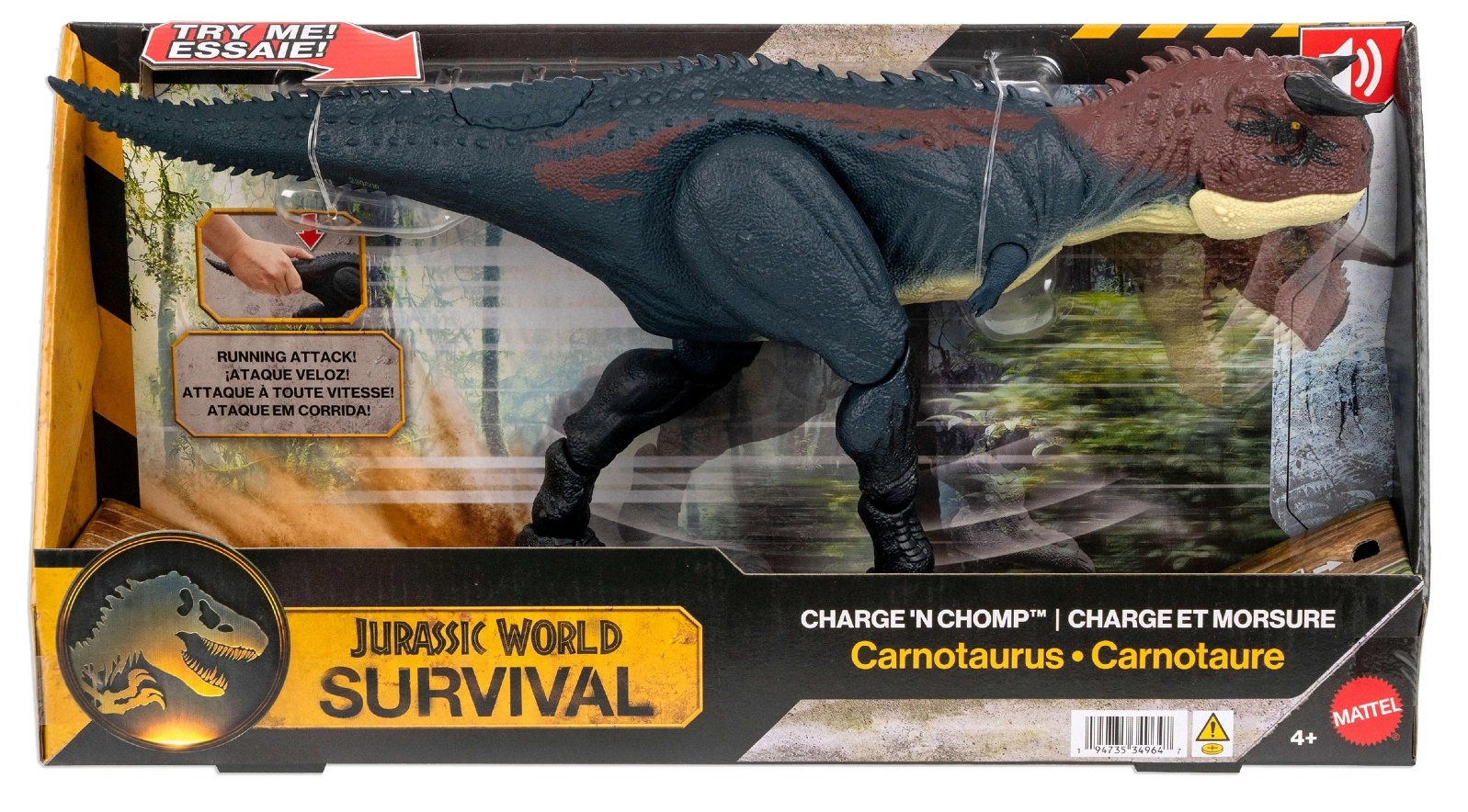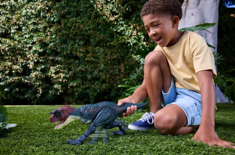 Strukturierte Haut, Hörner und filmische Farben inspiriert von Jurassic World machen den Carnotaurus zu einer fesselnden Figur zum Spielen und Ausstellen.
