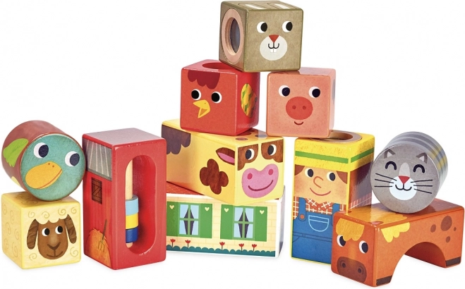 Wir präsentieren Ihnen die Vilac Holz Klangblöcke Bauernhof, ein tolles Spielzeug für kleine Entdecker. Dieses Set enthält elf Holzblöcke, jeder mit verschiedenen Bauernhofmotiven, die beim Drehen und Schütteln unterschiedliche Geräusche von sich geben.