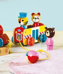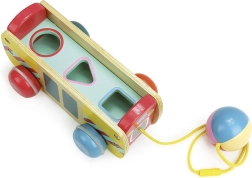 Dieser Ziehtierbus ist aus hochwertigem Holz gefertigt und bietet nicht nur Spaß, sondern auch Herausforderungen für kleine Denker. Mit bunten Farben und Tieren, die eingesetzt und herausgenommen werden können, fördert er die kindliche Entwicklung in mehreren Bereichen:
