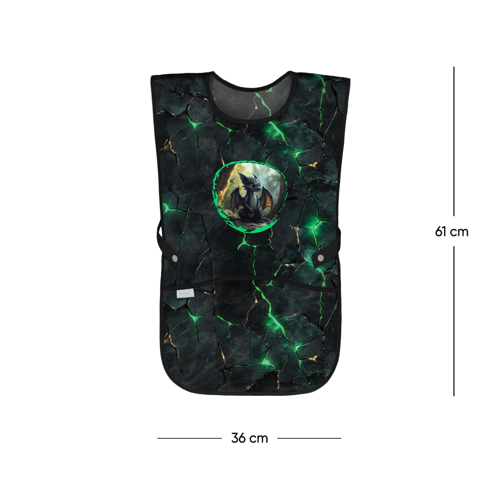 Durchdachte Details wie zwei Fronttaschen bieten Platz für Pinsel, Kleber und andere Materialien. Das beliebte Drachenmotiv begeistert Kinder und fördert ihre Kreativität.