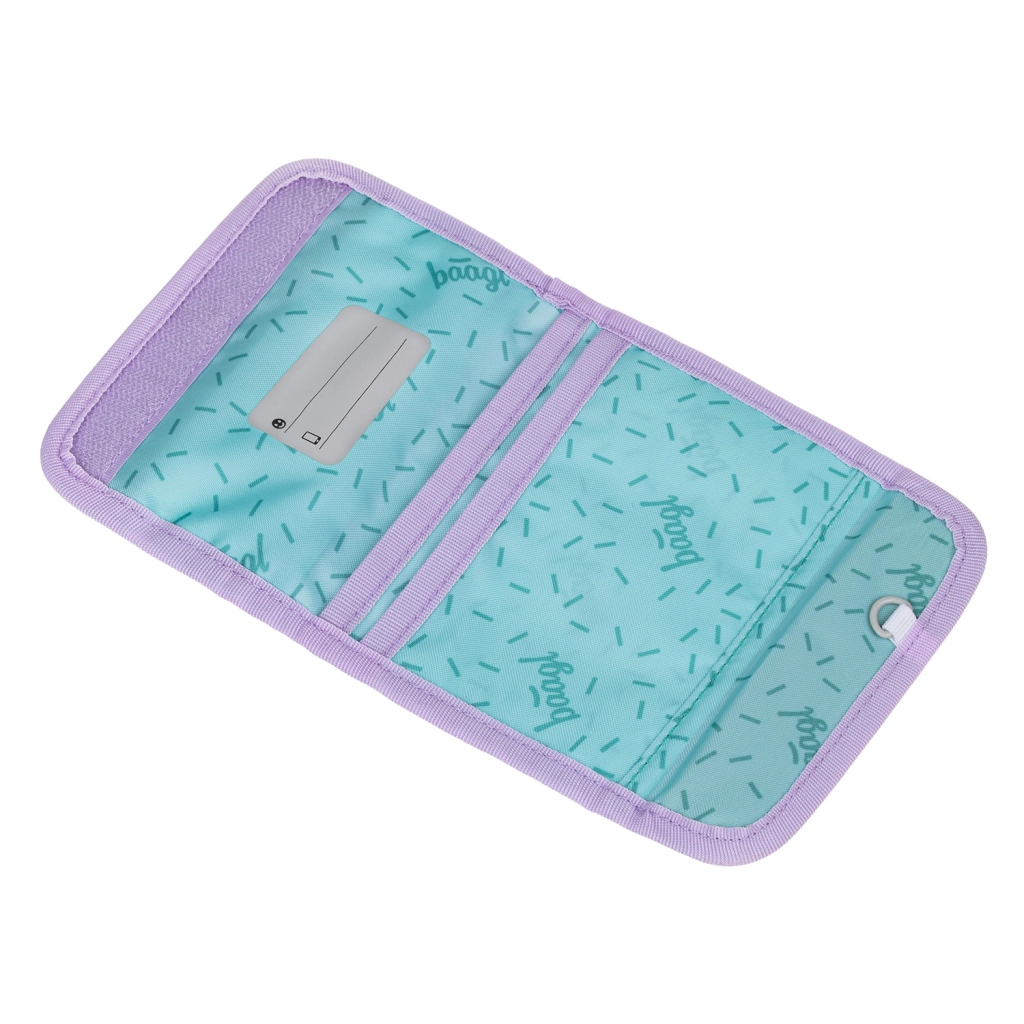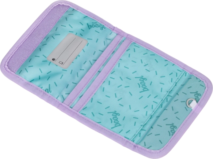 Die praktische BAAGL-Geldbörse Lavender ist ideal für Kinder – in der Schule wie in der Freizeit. Dank des Tragens um den Hals haben Kinder alles Wichtige stets griffbereit und sicher verstaut. Die Innenaufteilung mit Kartenfächern und Namensschild sorgt für Ordnung, während die vordere Reißverschlusstasche Münzen und Kleinigkeiten aufbewahrt.