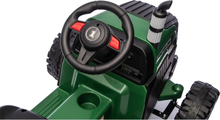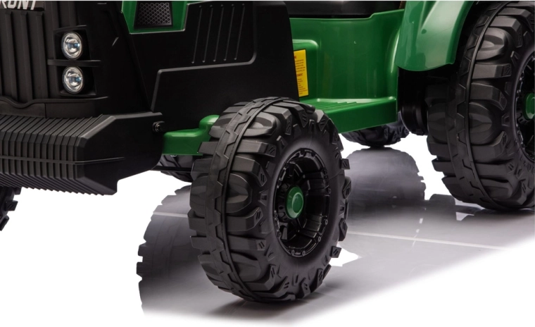 Das elektrische Rutschfahrzeug im Traktorstil bietet eine Kombination aus Stabilität, Sicherheit und realistischen Details – von der markanten Front mit LED-Lichtern bis zum tiefen Reifenprofil für sicheren Grip auf festem und leicht unebenem Untergrund. Der Sitz mit Sicherheitsgurt und Rückenlehne sorgt auch bei längeren Fahrten für Komfort.
