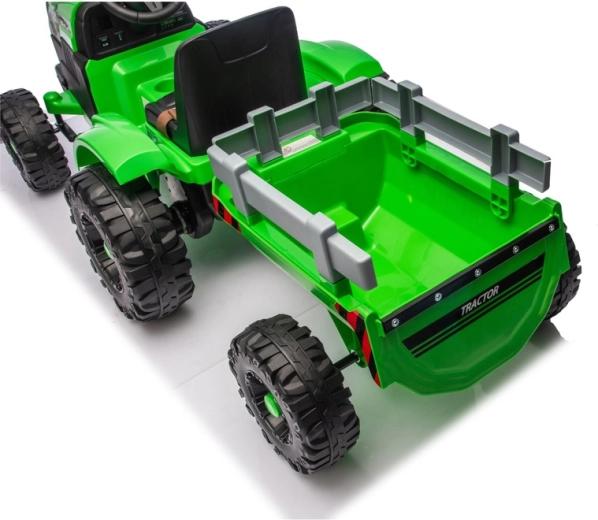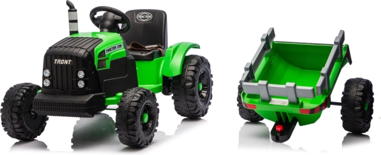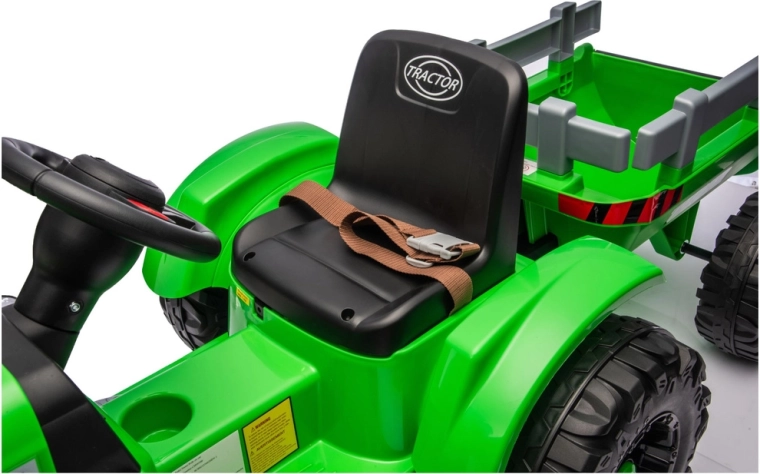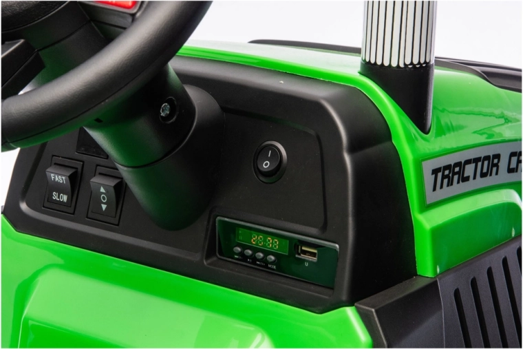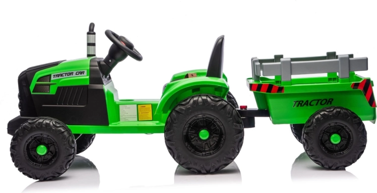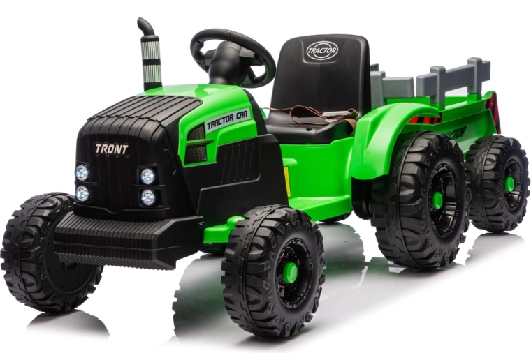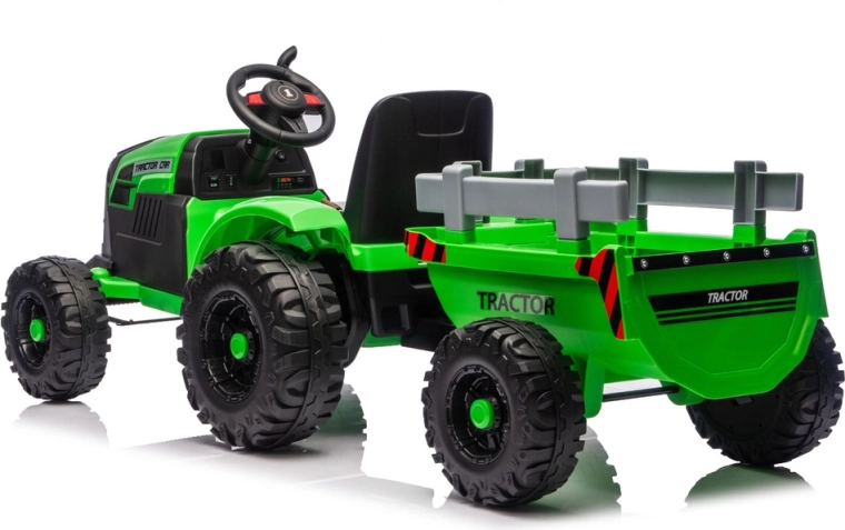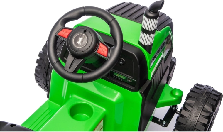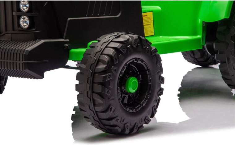 Erleben Sie eine realistische Fahrt mit dem elektrischen Traktor, der Spaß, Sicherheit und Zweckmäßigkeit verbindet. Dank 24V-Stromversorgung und kräftigen Rädern mit tiefem Profil meistert er unebenen Untergrund im Hof und im Park. Der abnehmbare Anhänger ermöglicht es Kindern, Spielzeug, Laub oder kleine Schätze bequem zu transportieren.