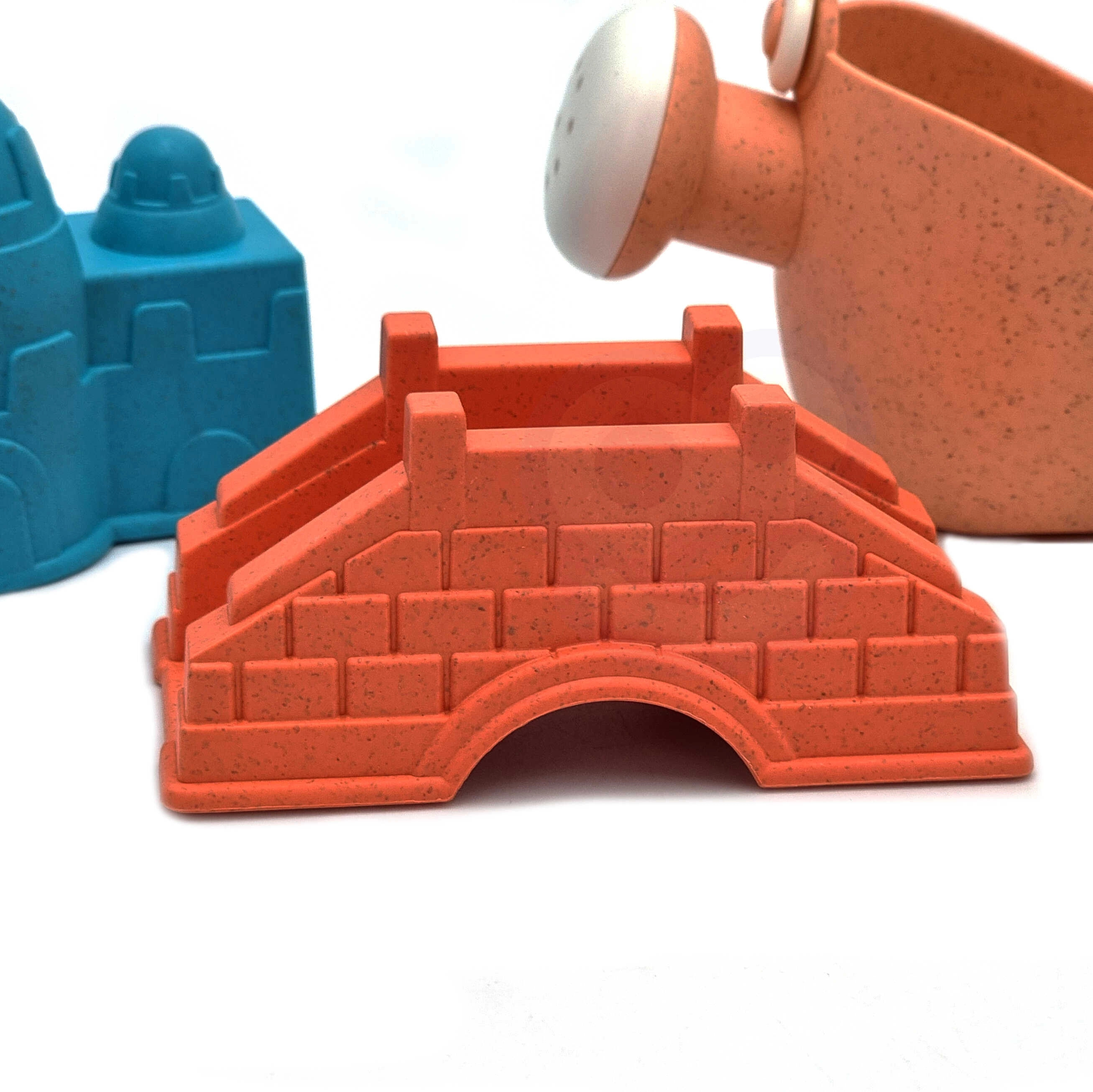 Förmchen mit Motiven von Burgmauern und Brücke helfen Kindern, stabile und detailreiche Sandbauten zu erschaffen – ideal für Sandkasten und Strand.