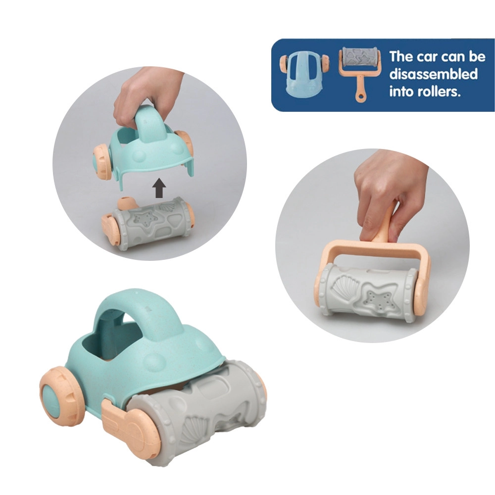 Der leichte Wagen mit griffigem, glattem Griff lässt sich leicht schieben und tragen. Die Walze vorn erzeugt Spuren und Strukturen im Sand für originelle Kunstwerke.