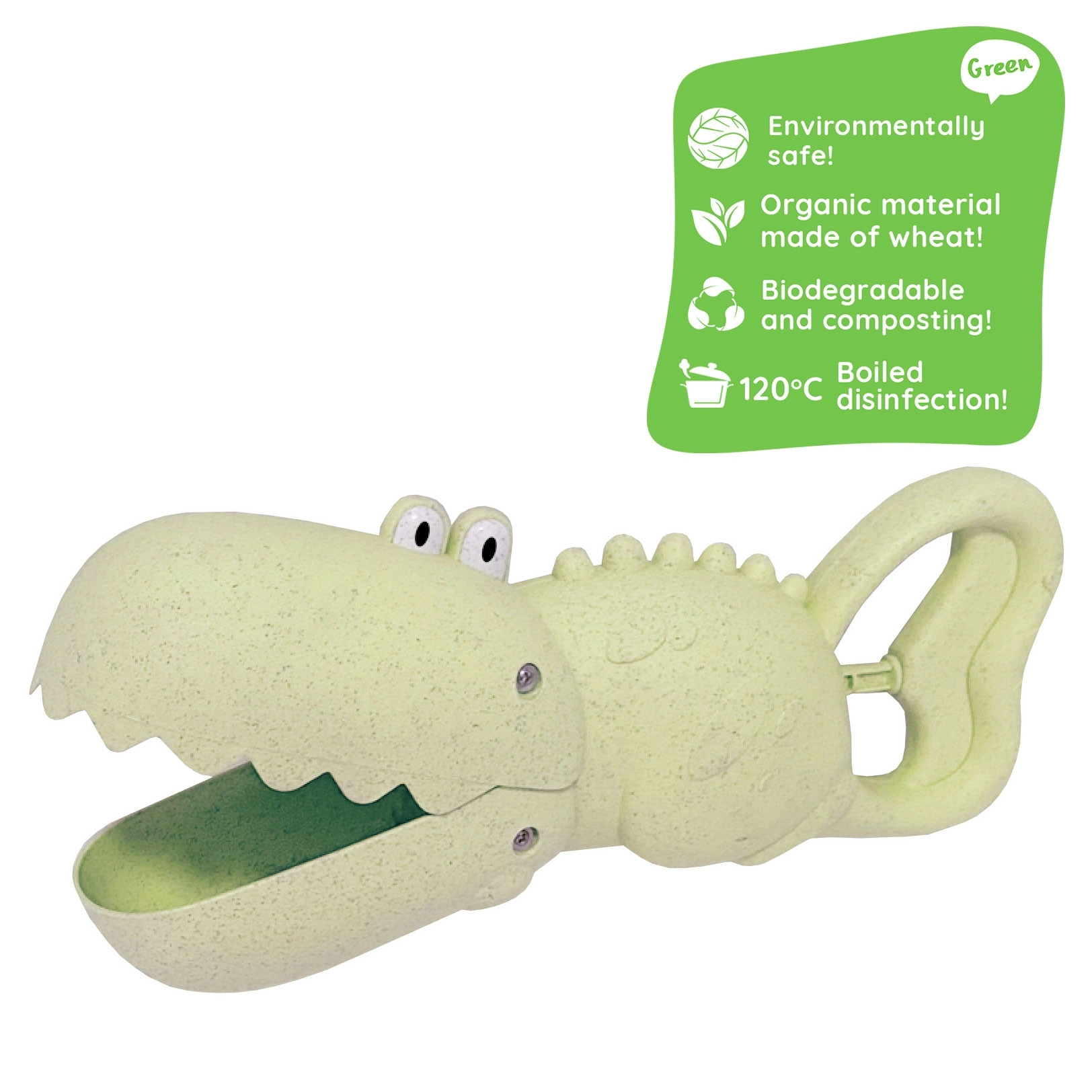 Entdecken Sie die unterhaltsame und umweltfreundliche Krokodil-Schaufel, die jeden kleinen Burgenbauer begeistert. Dank der cleveren Form nimmt sie Sand und Wasser leicht auf, transportiert und gießt sie aus und übernimmt so die Rolle von Schaufel und Eimer in einem. Ideal für den Spielplatz, den Sandkasten, den Strand und den Garten.