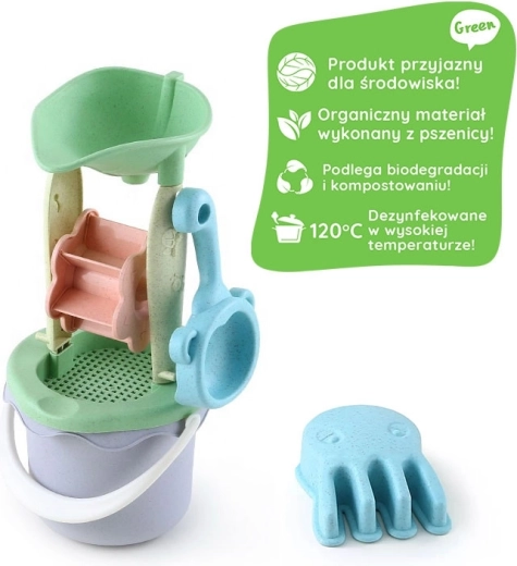 Entdecken Sie umweltfreundlichen Spielspaß mit dem Woopie Green Kinderset. Das Herzstück des Sets ist die Mühle für Sand und Wasser, die sich bei jedem Einfüllen oder Eingießen dreht und das Spiel in eine fesselnde Aktivität verwandelt. Die leichte, robuste Konstruktion und die abgerundeten Formen sorgen für eine sichere und komfortable Nutzung auch für die kleinsten Hände.
