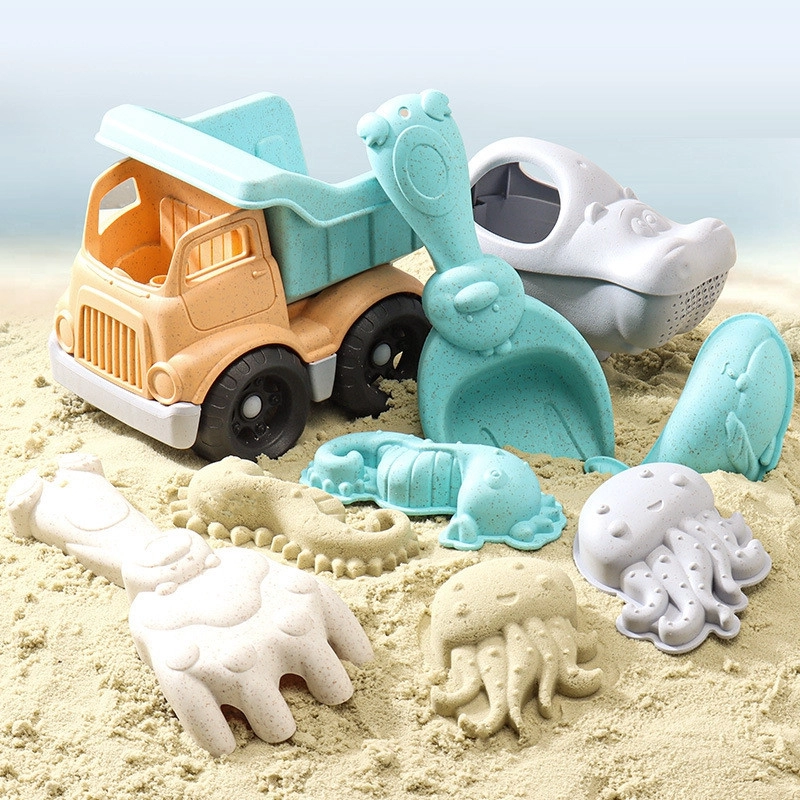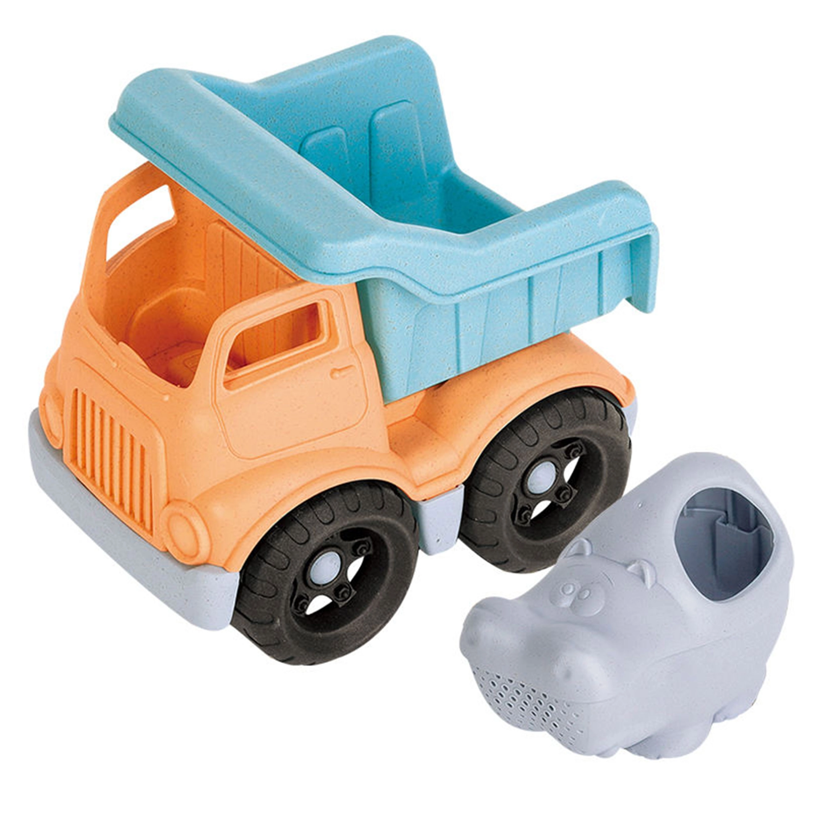 Der praktische Kipplastwagen mit kippbarer Mulde, die niedliche Gießkanne in Nilpferdform, Schaufel, Harke und drei Meeres-Förmchen sorgen für stundenlangen Spaß beim Bauen, Transportieren und Gestalten. Das Spielen mit dem Set fördert Fein- und Grobmotorik, Hand-Auge-Koordination, räumliches Denken und soziale Fähigkeiten.