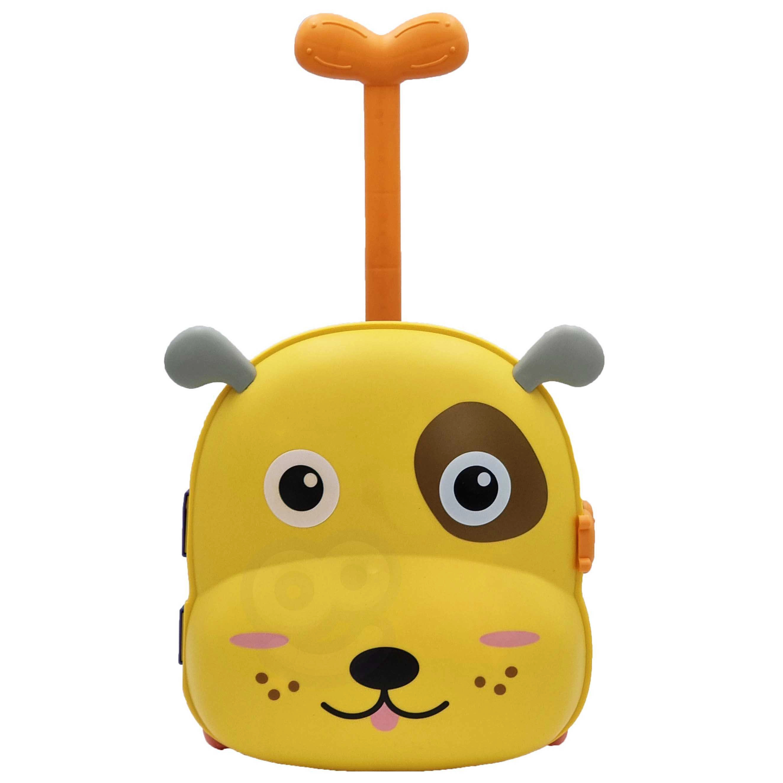 Der leichte Koffer in Hundeform dient als Stauraum, tragbare Wanne und Spielstation. Dank Rollen und ausziehbarem Griff kann das Kind ihn leicht ziehen.