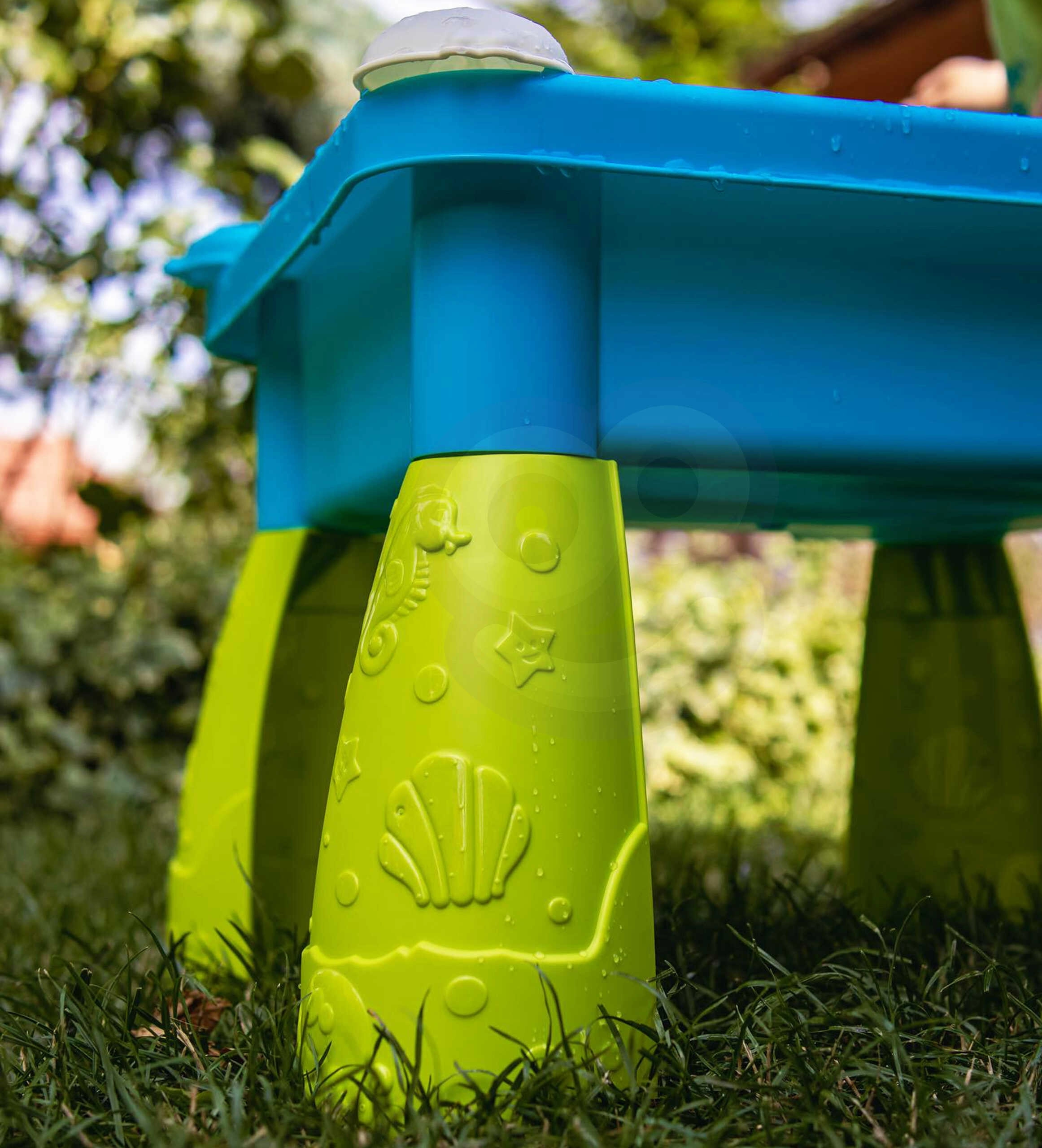 Der Tisch ist stabil genug für den Einsatz im Garten, auf der Terrasse oder im Kinderzimmer. Mit dem umfangreichen Zubehör können Kinder schöpfen, umfüllen, formen und eigene Wasserexperimente durchführen. Einfache Montage und eine kompakte Bauweise erleichtern Transport und Aufbewahrung.